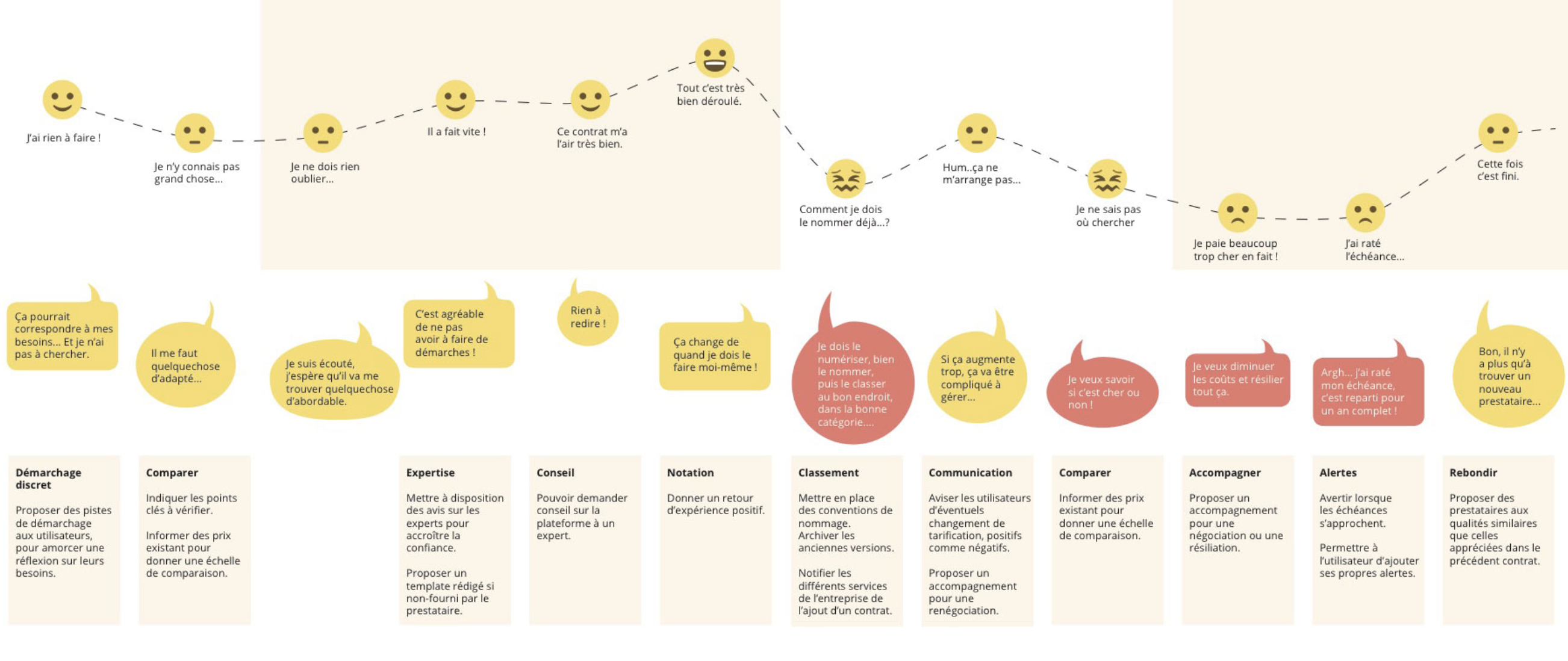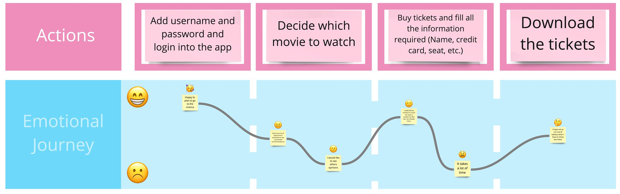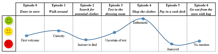 跟旅程图不同,它关注的不是用户“做什么”,而是用户“感觉如何”;不是“流程通不通”,而是“情绪顺不顺”。