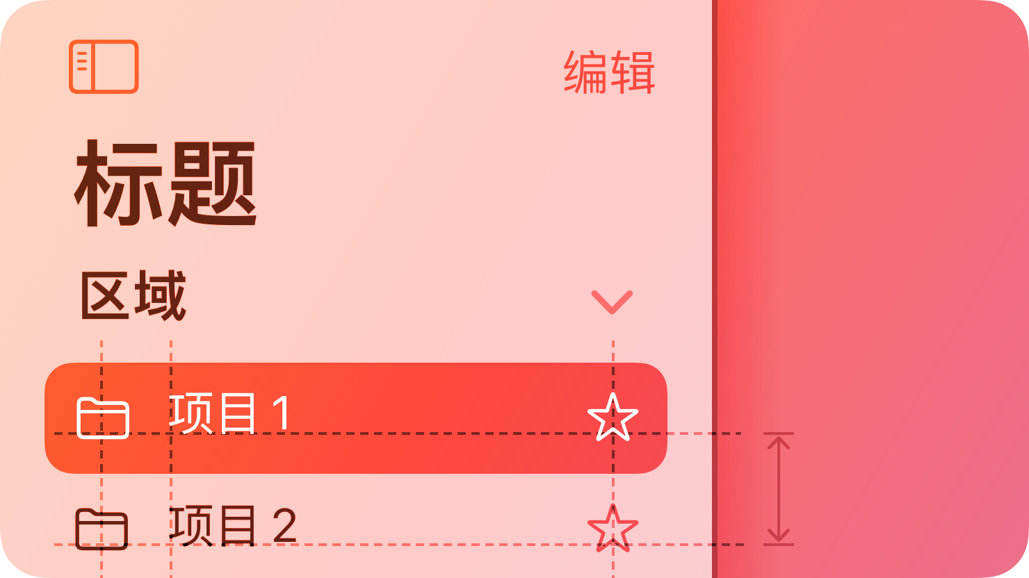 边栏悬浮于内容之上而不锚定到视图的边缘。它提供了 App 信息层级的大致平面视图,使用户可同时访问多个同级内容区域或模式。