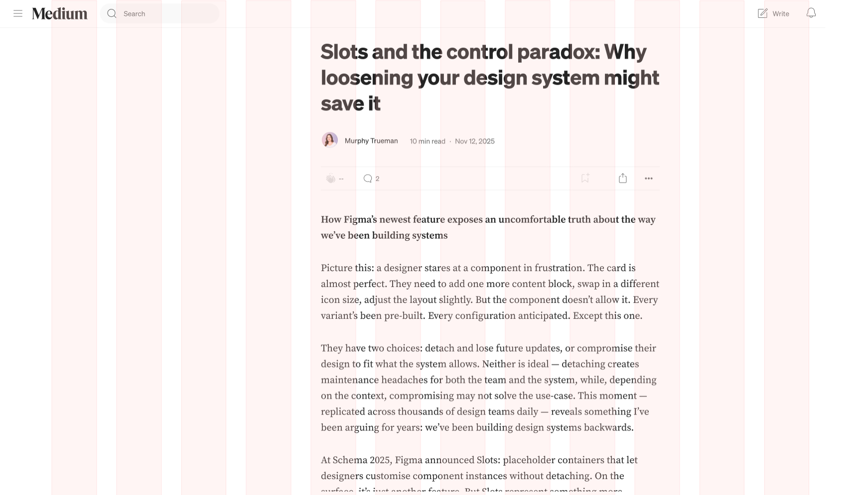 我们再从读者的视角切入一次,当用户上下滚动一篇文章时,他并不会意识到“哦,这里用了 12 列网格”。但他会感觉到页面是稳定、舒服、有节奏的。