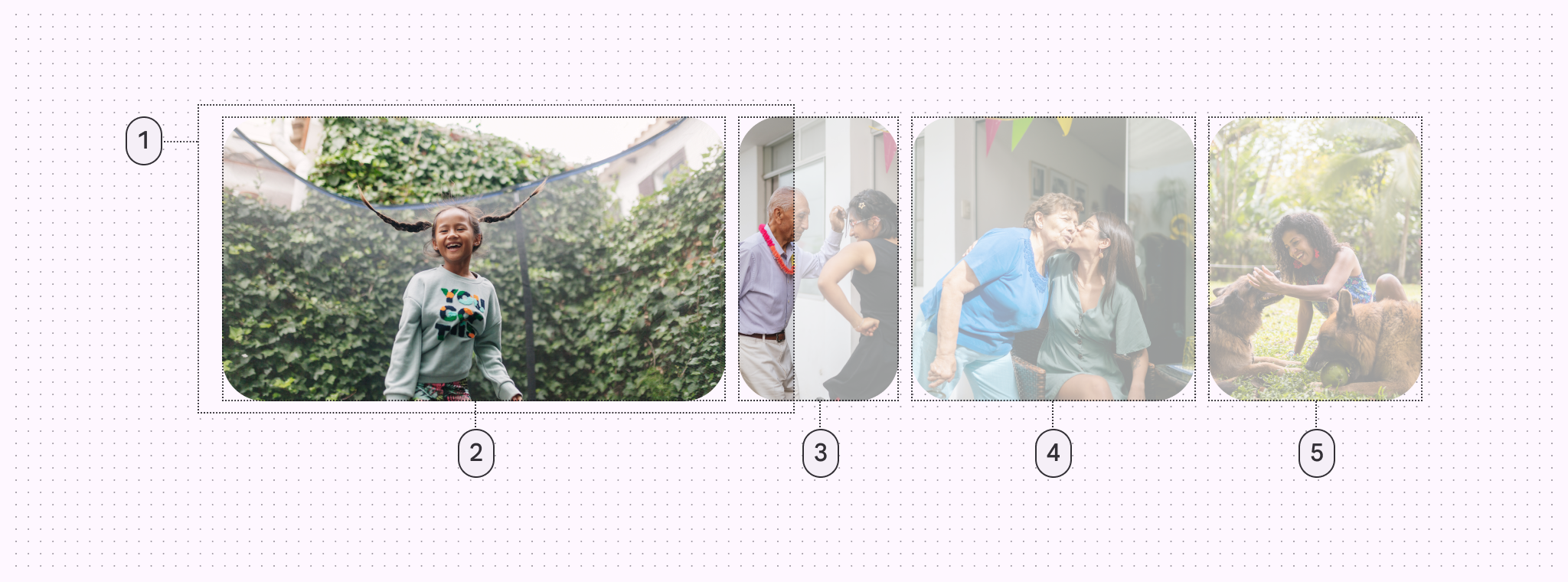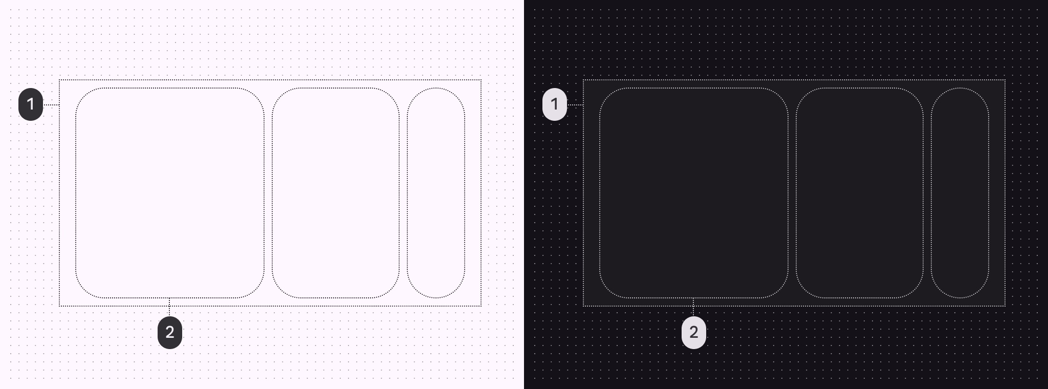 项目在松手时会吸附到网格上。将其用于多浏览(Multi-browse)、主视觉(Hero)和全屏(Full-screen)布局。