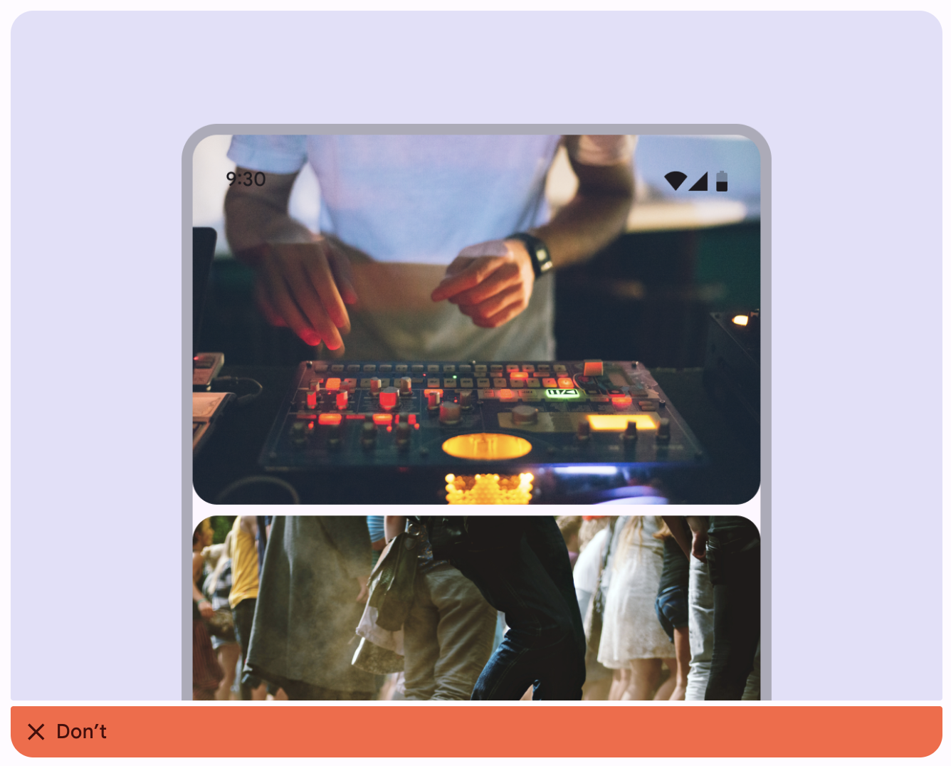 如果轮播项目需要大量文本或图像很复杂,应避免使用该布局。