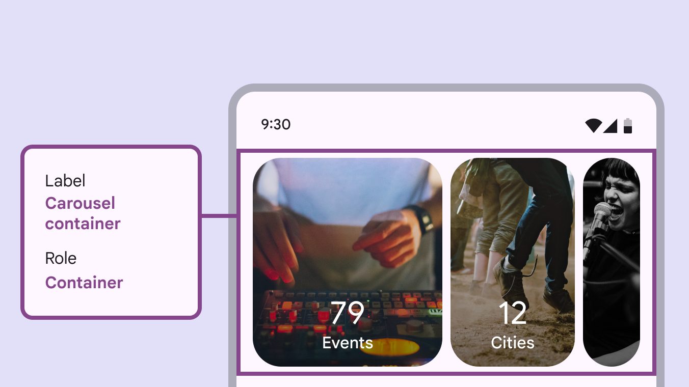 每个轮播的项目数量可能不同,因此标签会读出项目总数以及当前聚焦的项目。