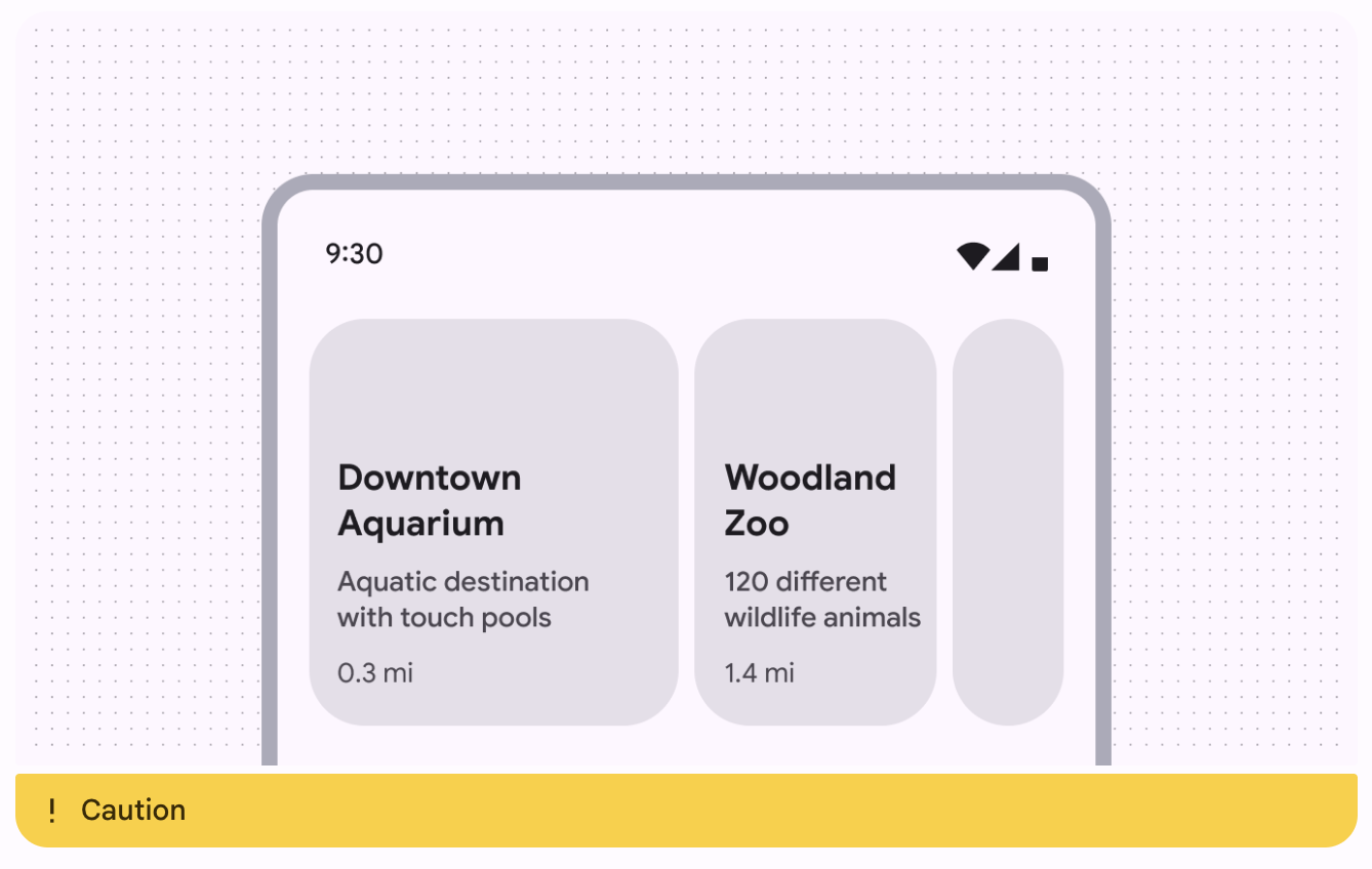 轮播项目必须在屏幕上完全可见(无容器布局(Uncontained layout)除外)。滚动时,项目会自动改变尺寸并吸附到位,以保持相同的布局。