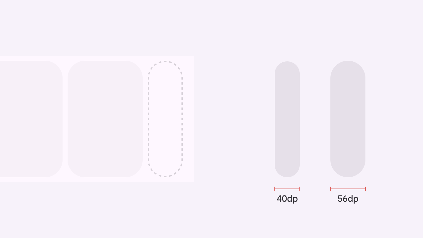 小号轮播项目的最小宽度为 40dp,最大宽度为 56dp。