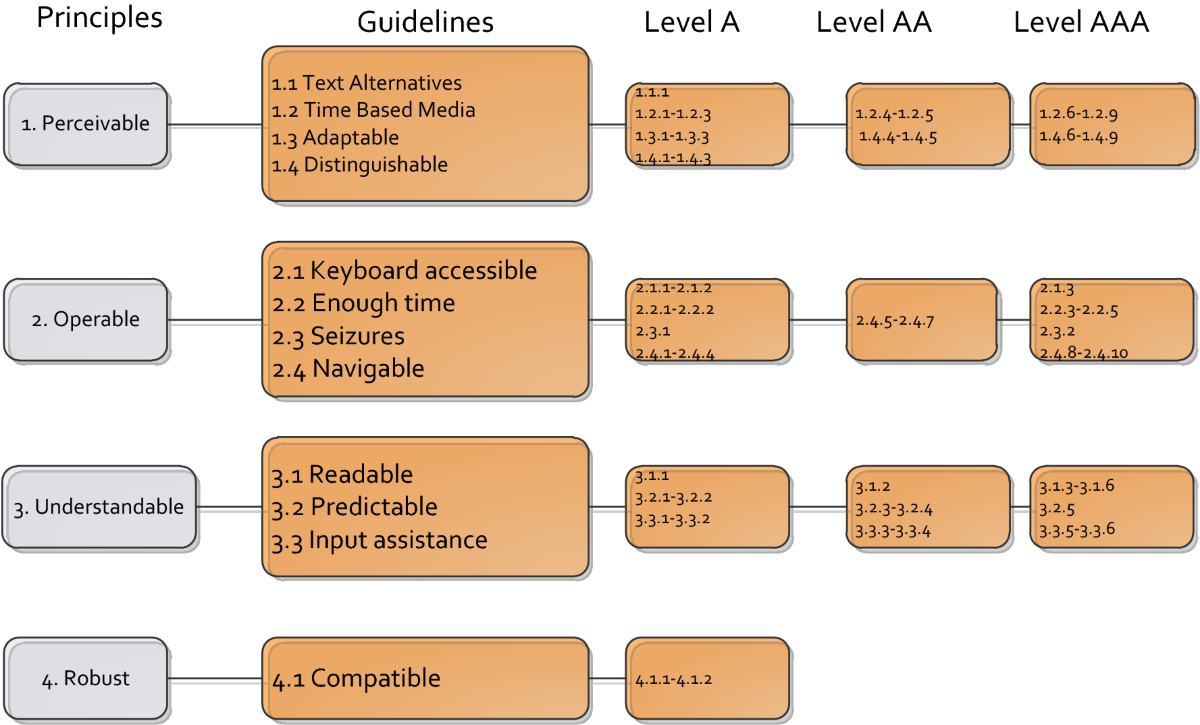 所以 WCAG 才会继续向下展开,把原则落成一套可执行、可验证的结构。