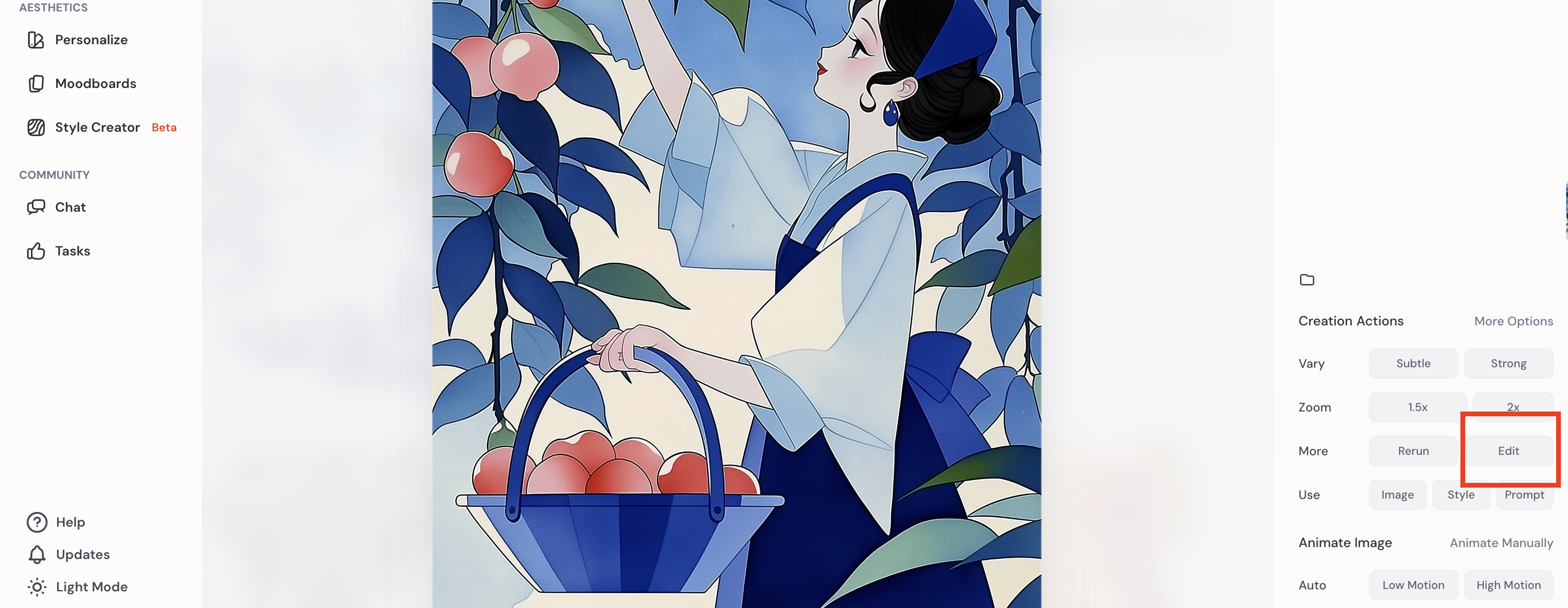在 Midjourney 网页端做“局部修图”,最常用的就是使用 Midjourney 提供的局部重绘(Vary Region / Editor)功能。你可以把它理解成:先圈选一块区域,再只让 MJ 重新生成这块,其他地方尽量不动。