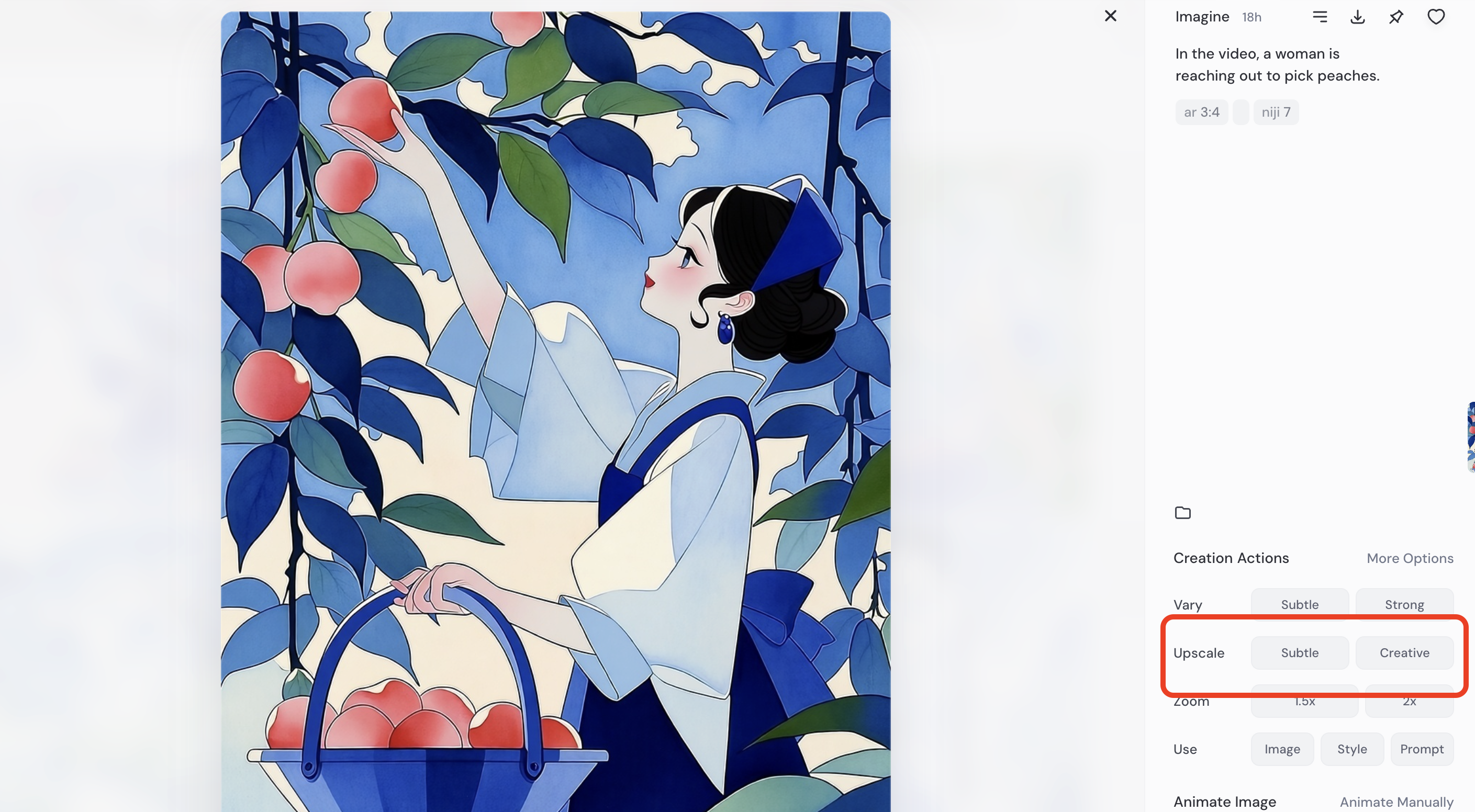 3. 先点 Upscale(如果你还没放大)。 放大后细节更稳定,局部重绘更不容易糊。