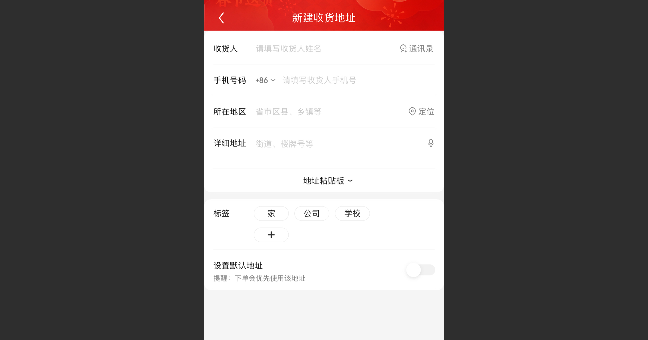 支付前后,需要补全收货人姓名、电话、详细地址、邮编,这是典型的寄送信息表。