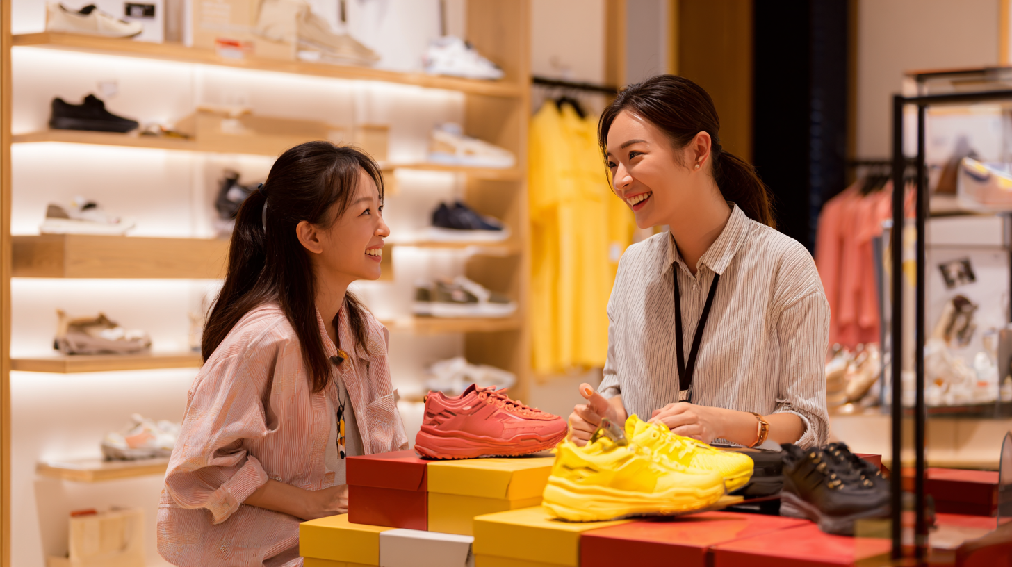 以买运动鞋为例,当我们走进一家品牌门店,可以直接在货架前四处挑选,试穿不同款式和尺码。店员会主动上前打招呼,帮忙找鞋、讲解功能,回答关于脚型、运动场景、价格预算的各种疑问。整个过程是一段自然的对话,一问一答之间,信息在空气里流动完了,而不是在某张纸或者某个页面上填空。