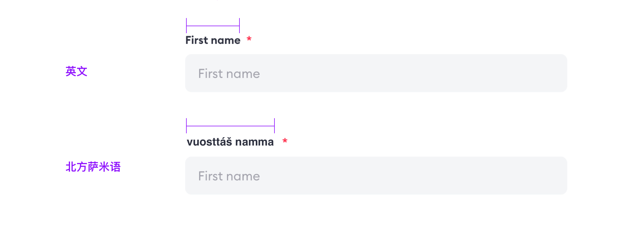 标签和输入框各占一行,横向空间彼此独立,不会互相挤压。当需要支持多语言,或在窄屏设备上适配时,上下结构可以容纳较长的标签文案,而不至于与输入框发生冲突,也不容易出现尴尬的折行。