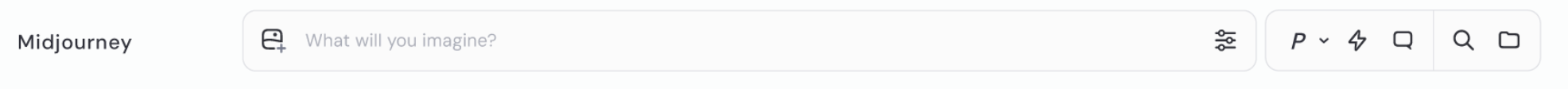 Imagine 输入栏是你输入提示词(Prompt)的地方。点击 发送按钮 或按下键盘上的 Enter,你的图像就会开始生成。Imagine 输入栏内包含多个实用工具: