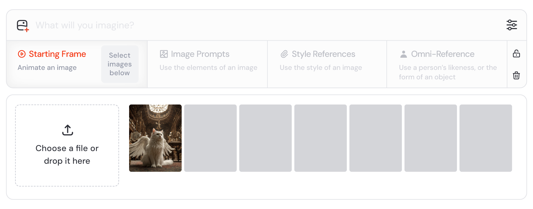 图片加入提示词后,你可以在 Imagine 输入栏中切换生成方式, 生成视频或生成静态图像