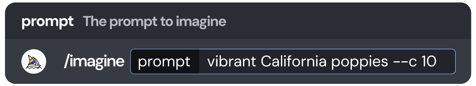 在 Discord 中输入提示词(prompt)时,请在结尾添加参数 --c # 来设置混乱度。